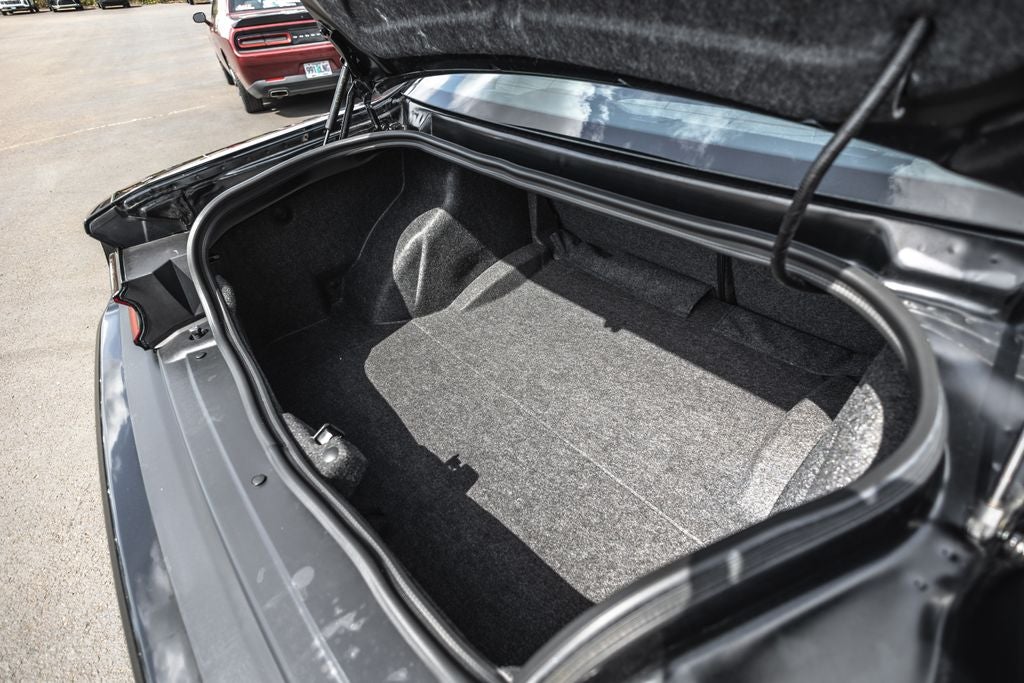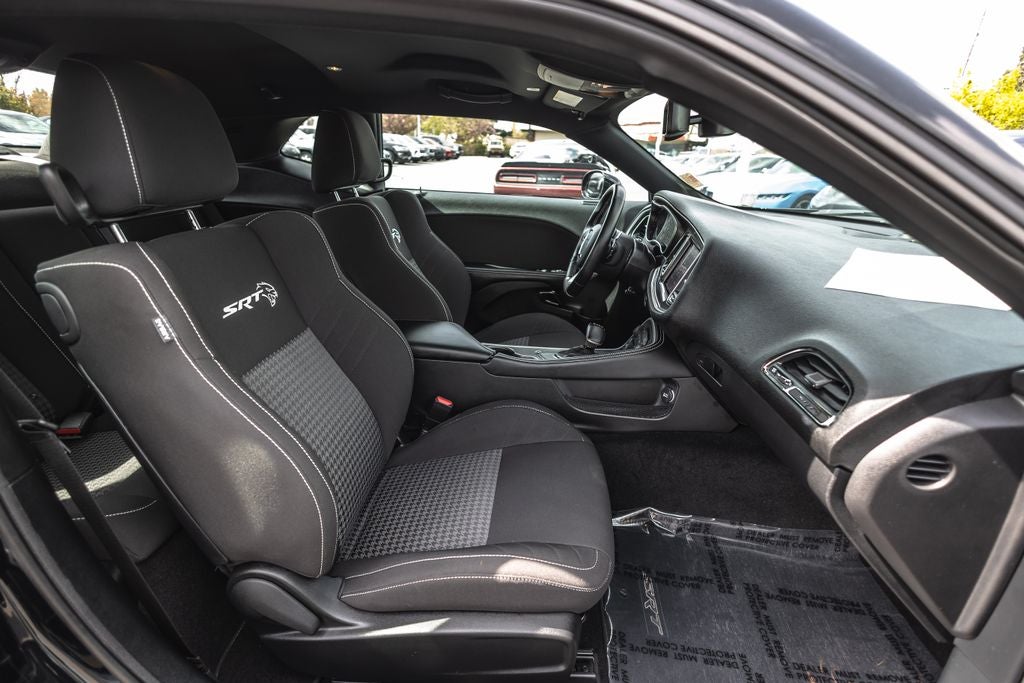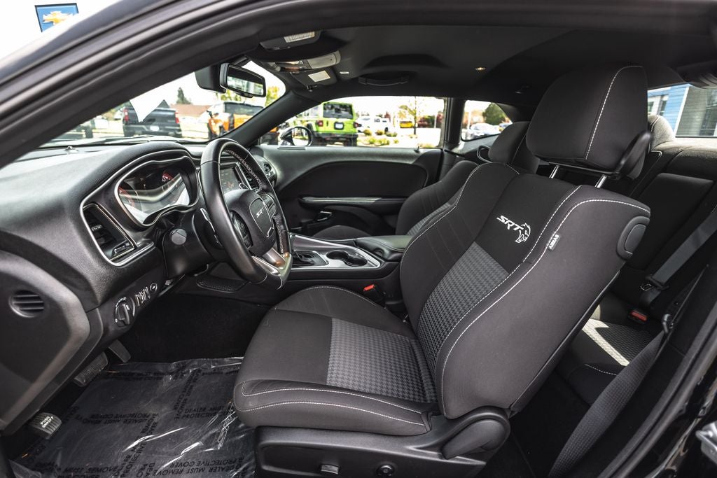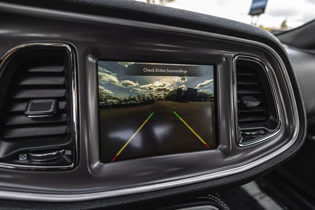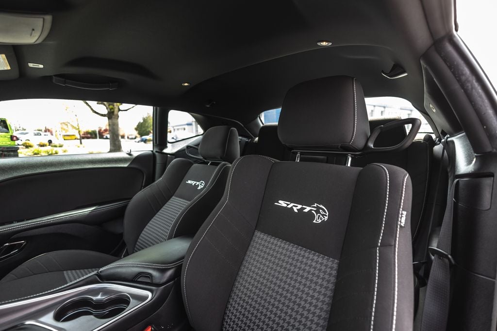 Inside, the **black interior** offers a premium, driver-focused cockpit with performance-inspired design, supportive seating, and modern technology. Equipped with **Apple CarPlay, Android Auto, premium infotainment, and advanced performance controls**, this Challenger blends classic muscle car feel with modern convenience and connectivity.