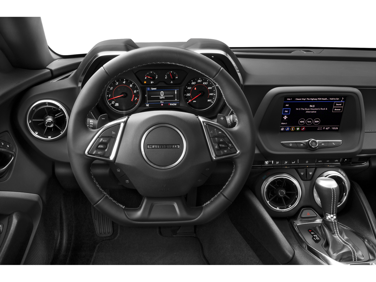 Under the hood is the powerful 3.6L V6 Direct Injection engine, paired with a lightning-quick 10-Speed Automatic transmission and Rear-Wheel Drive (RWD). This combination delivers strong horsepower, responsive acceleration, and classic Camaro performance.
