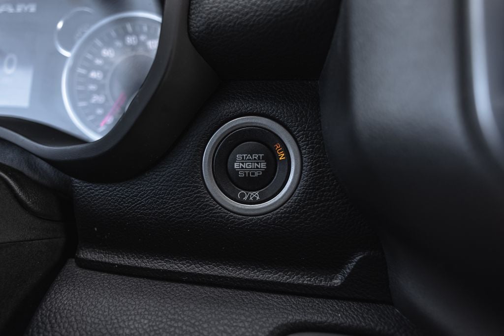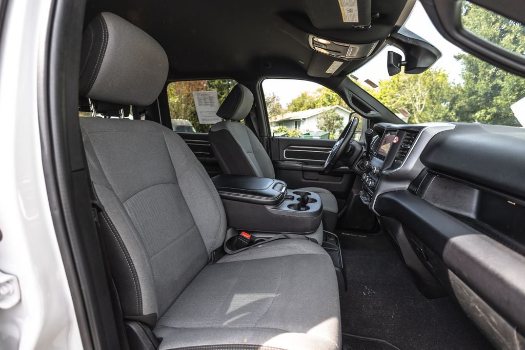 Finished in Bright White Clearcoat with a Diesel Gray/Black interior, this Ram combines professional work-truck capability with bold Ram styling.